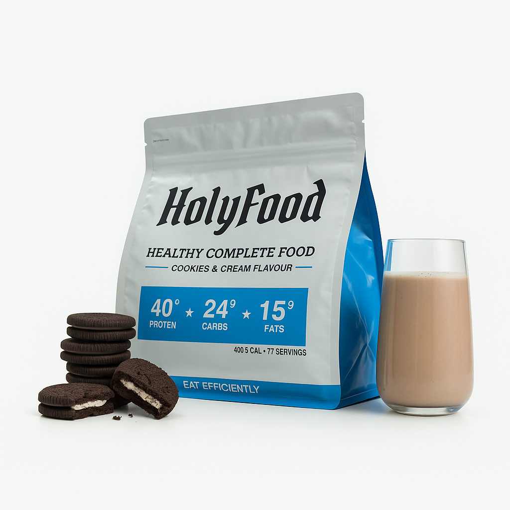 HolyFood розроблений таким чином, щоб забезпечувати організм всіма необхідними поживними речовинами у зручній формі. Він містить високоякісні інгредієнти, такі як протеїн гороху та коричневого рису, лляне насіння та порошок з кокосу, і не містить штучних підсолоджувачів чи консервантів.